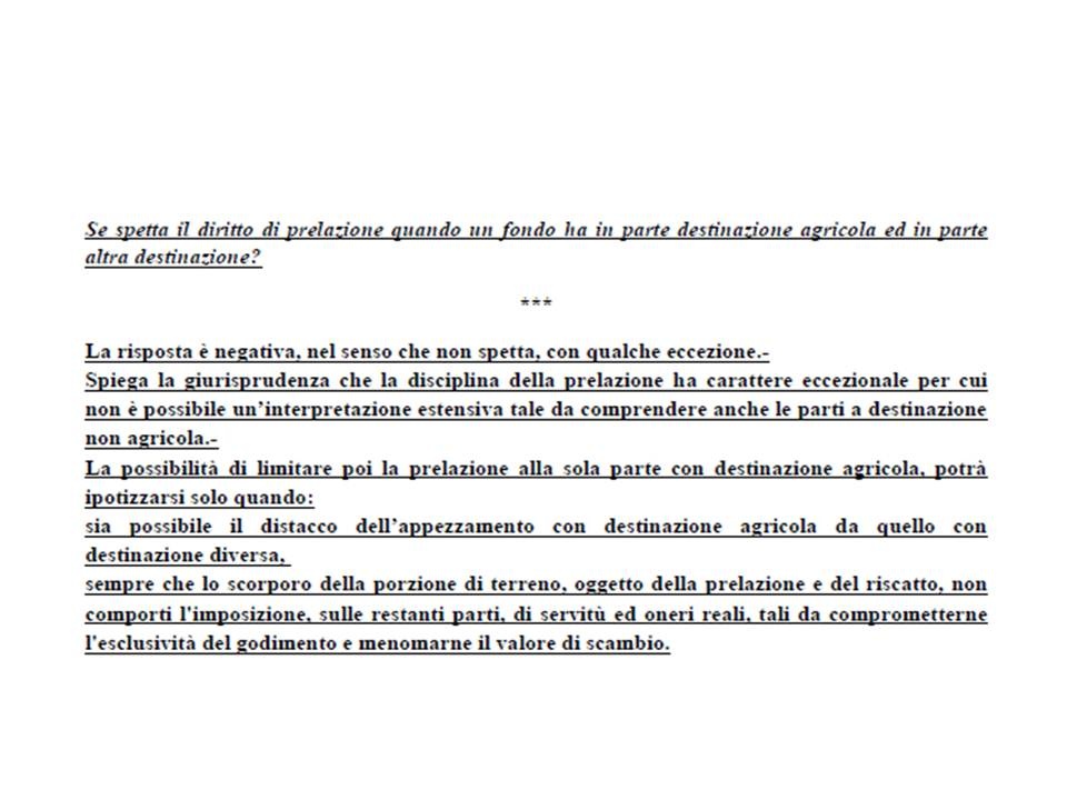 Nº 482 QUESITO N. 723 :Se spetta il diritto di prelazione quando un fondo ha in parte destinazione agricola ed in parte altra destinazione?